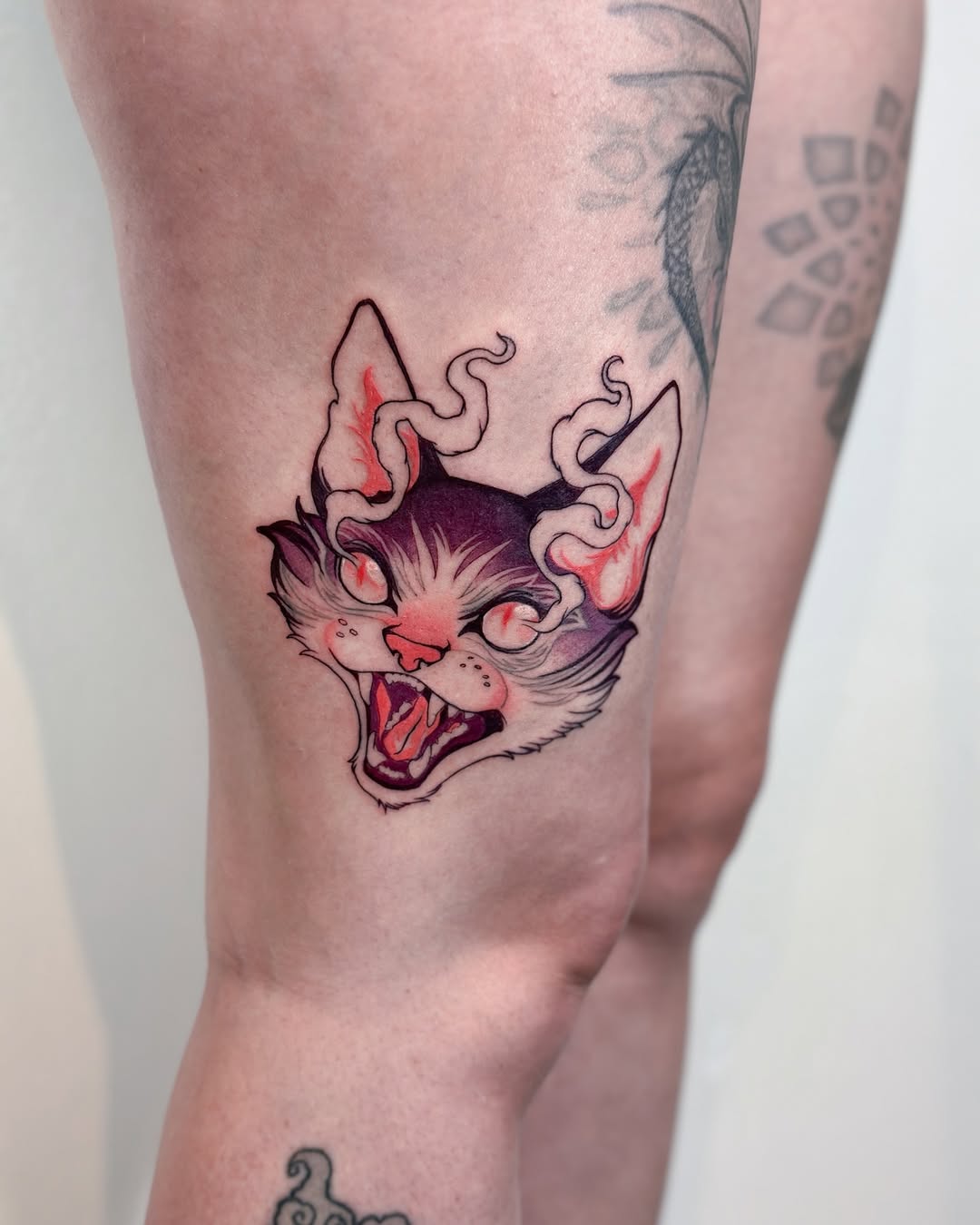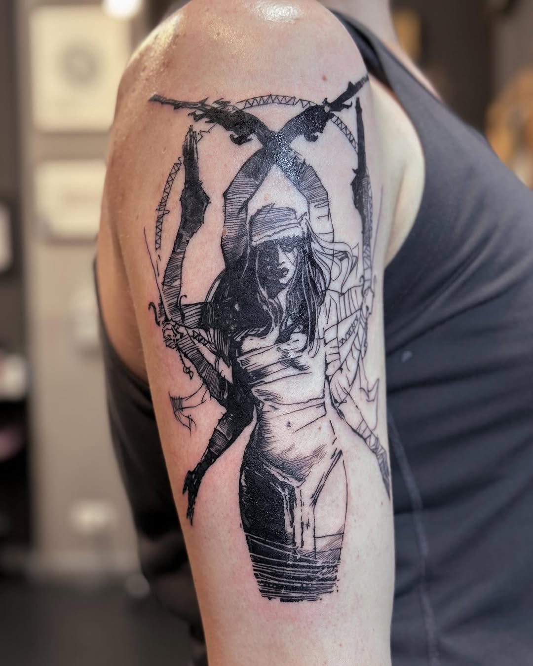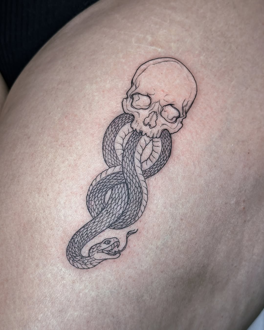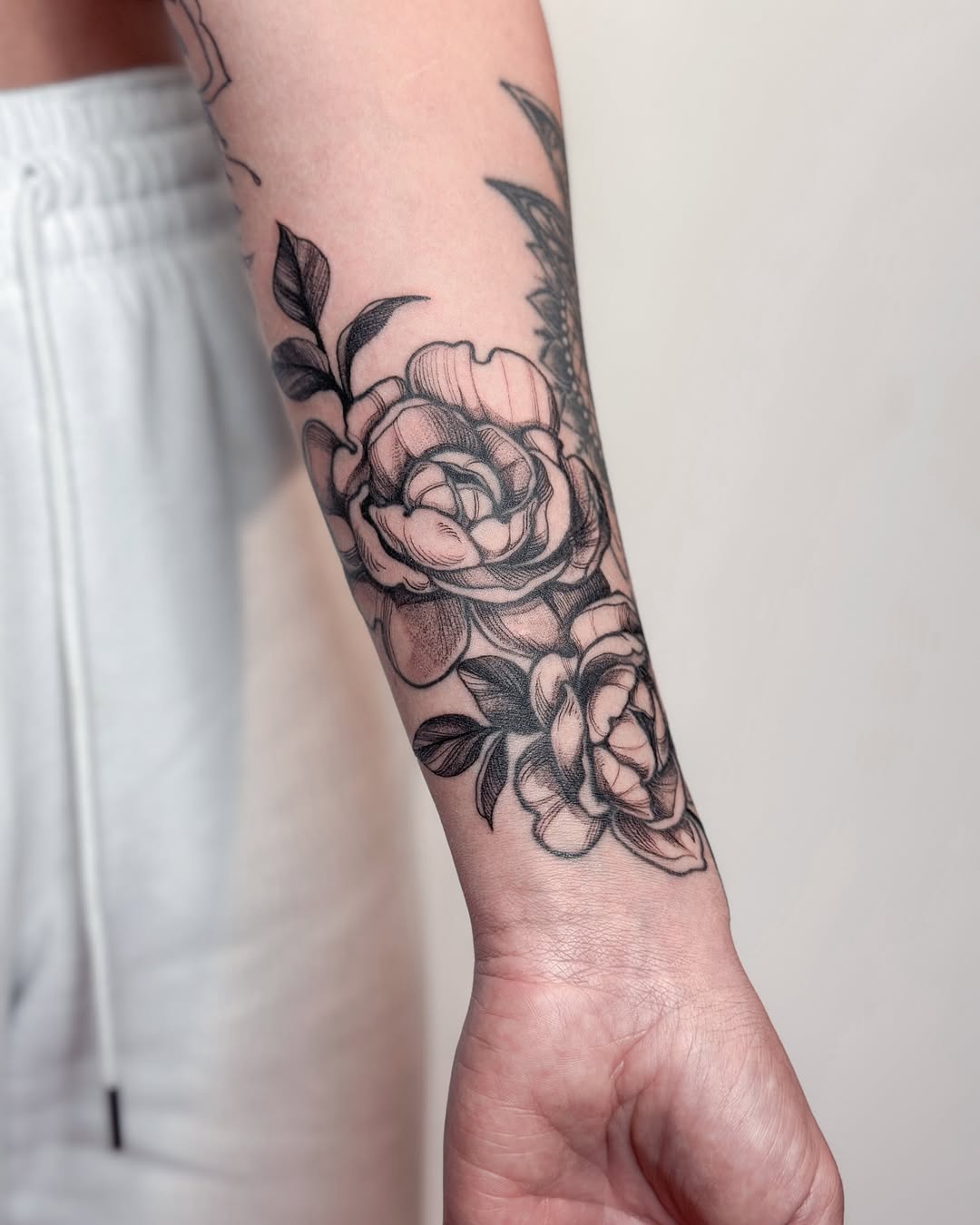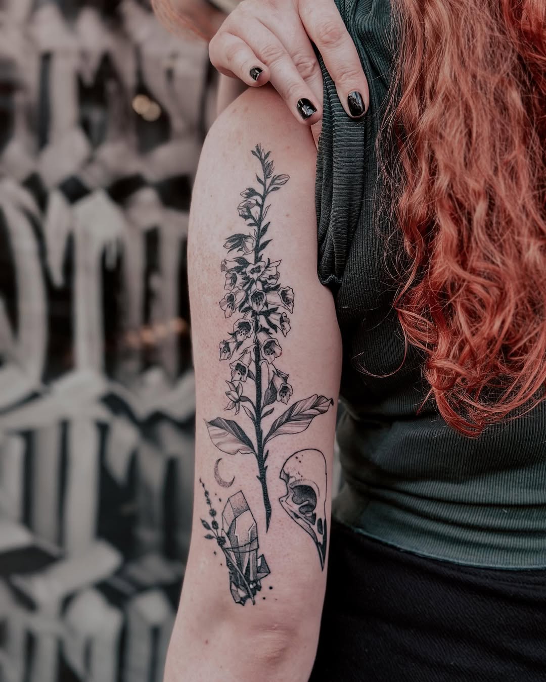 My tattoo style combines fine lines with graphic and engraving-inspired elements, resulting in detailed and striking designs. While I love working in black and gray, I’m equally passionate about incorporating color and am excited to bring more vibrant pieces to life. My favorite subjects to tattoo include plants, flowers, animals, mythical creatures, and occasionally portraits.