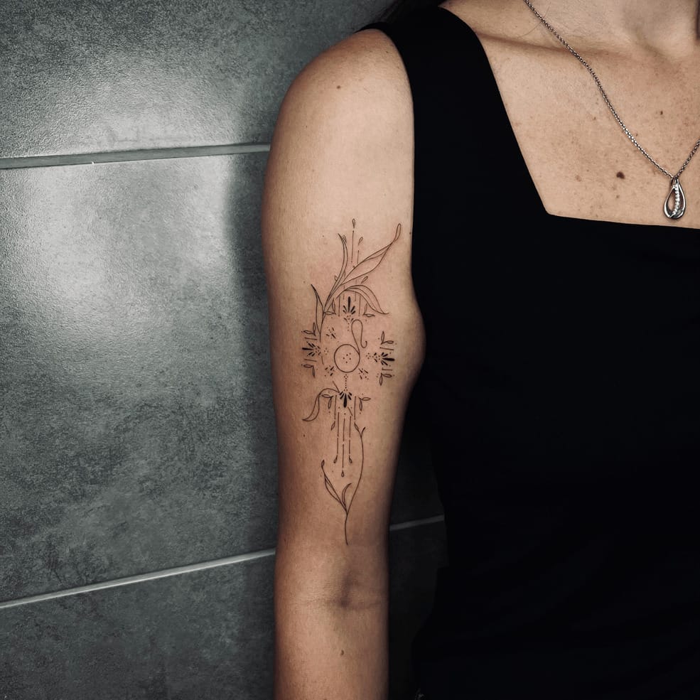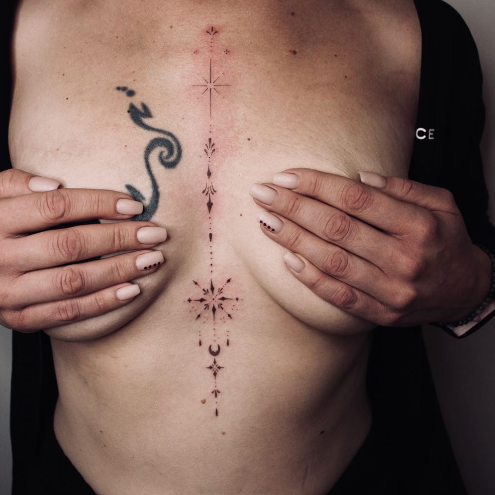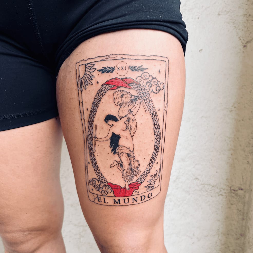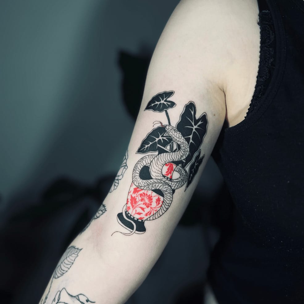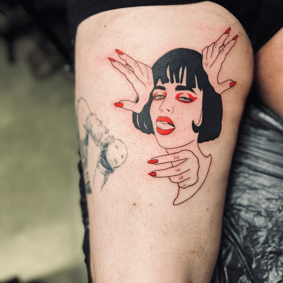 My name is Eva, a Spanish tattoo artist whose style defies definition. My approach is a vibrant mosaic, woven from countless influences over the years. Rooted in the stark contrast of black and red, my work merges graphic precision with illustrative storytelling, featuring fine lines, intricate dotwork, and bold, inky surfaces. The female form and Asian culture inspire me deeply. Having immersed myself in diverse cultures, my art reflects a world seen through a thousand eyes. Medusa is my logo, symbolizing belief and transformation. My tattoos are not just designs; they’re a testament to the complex narrative that shapes who I am today.