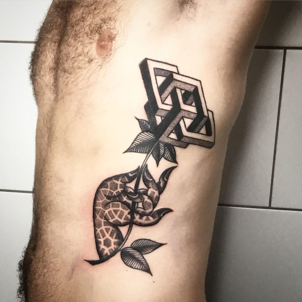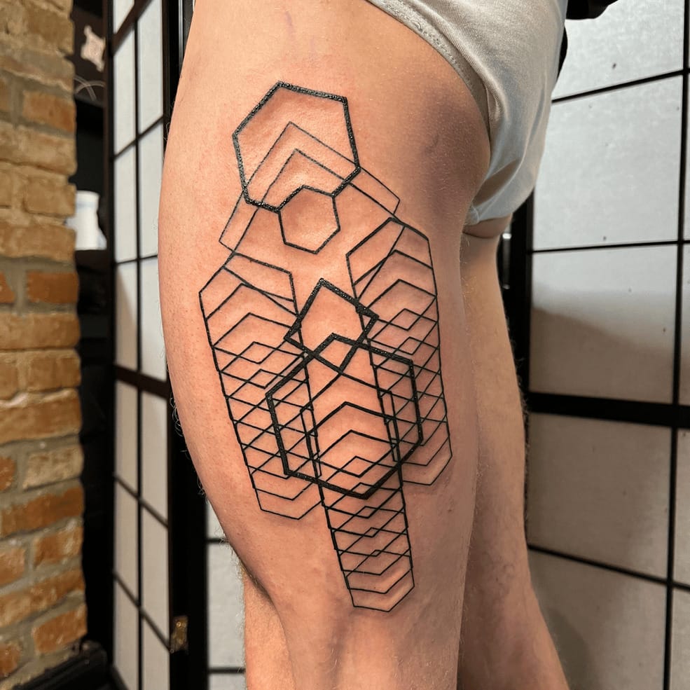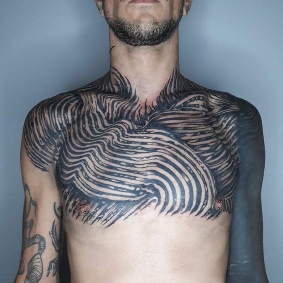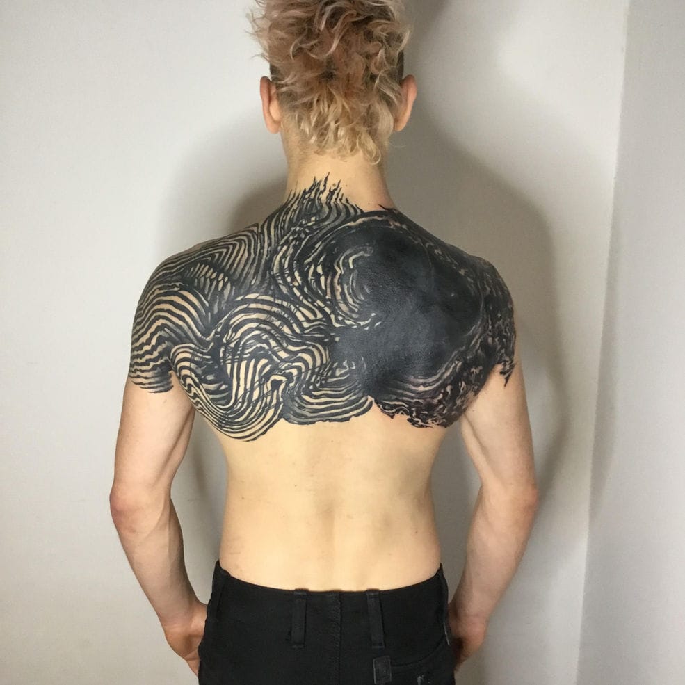 Hey, I’m Giacomo and I based my artist name gwhitenoise on a broadband sound that contains all frequencies across the audible spectrum, known to improve sleep quality and other positive effects on the human brain. I studied Art in Italy and started my career in the world of body modification as a piercer in Florence before fully committing to tattoo art. Afterward, I worked in several tattoo studios in London where I refined my skills by learning a variety of different styles all based on black ink such as blackwork, dotwork, abstract, ornamental, neotribal, and illustration. Now I’ve been in Berlin for more than 15 years and love to push the boundaries of innovative tattoo creation, especially in the abstract sector.
