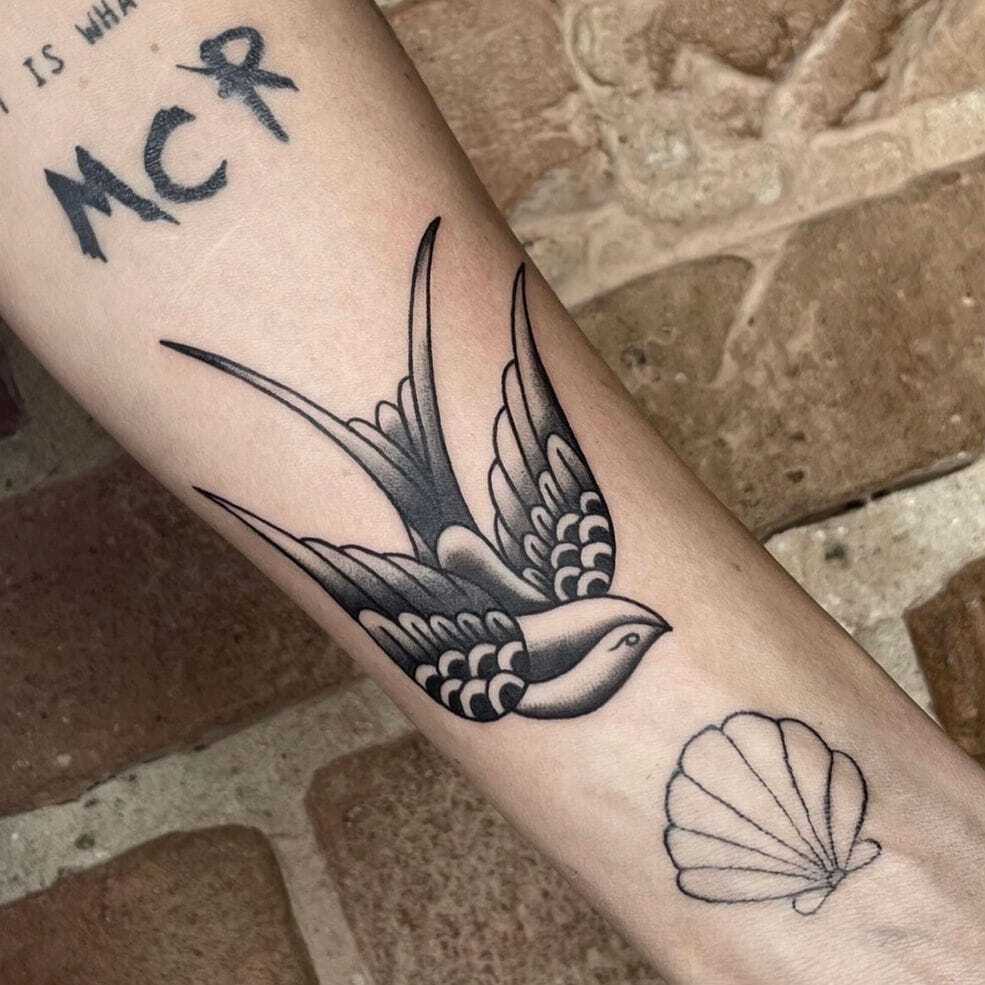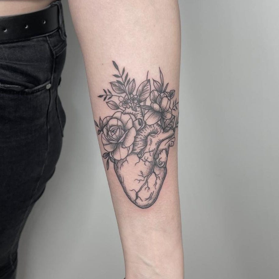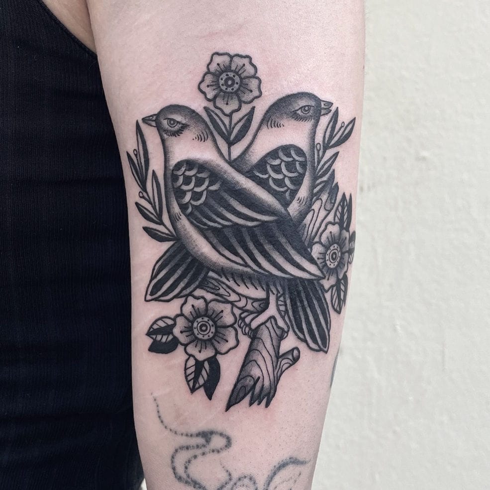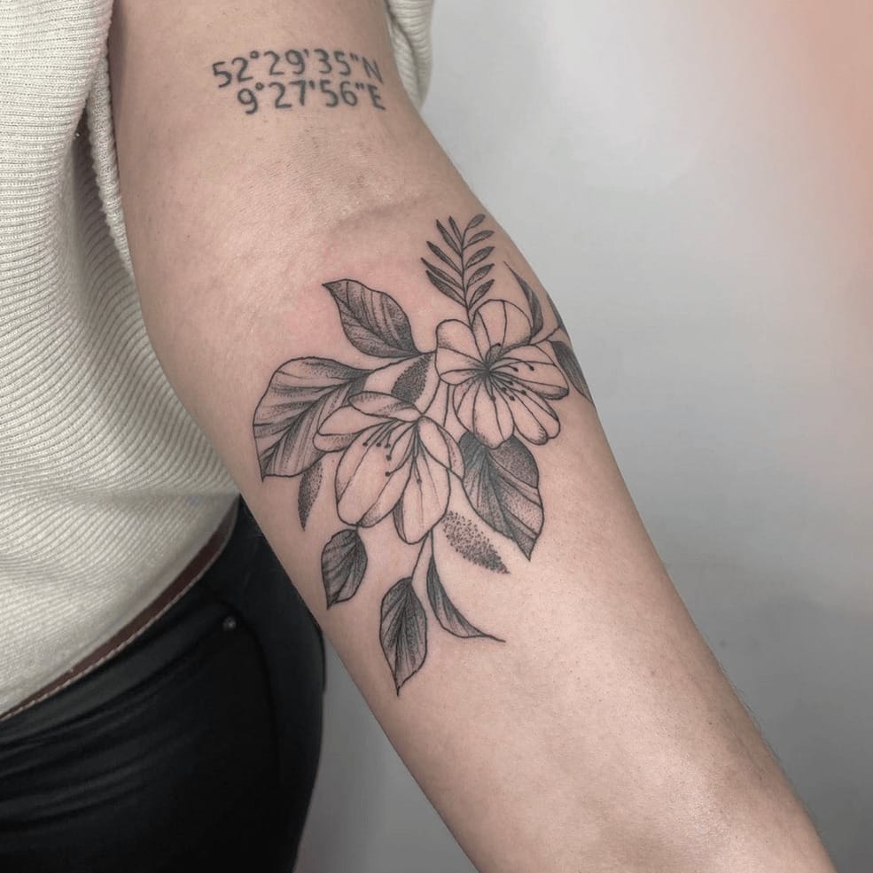 I’m Maya and I’m originally from sunny Tel Aviv. In addition to Hebrew and German, I also speak English and Russian. I grew up with tattoo parlors and spent a lot of time in tattoo studios with friends and family. Early on it was clear to me that one day I would turn my passion for tattoos into a career. In my opinion, all that is needed as a source of inspiration is the beauty of nature, from which we all come and which connects us all. My preferred style is traditional/old-school in black/gray because this type of tattoo has a strong long-term effect on the skin and can withstand all trends. Lastly, I also enjoy realizing finer motifs and am open to all kinds of ideas. I can’t wait to meet you! 🙂