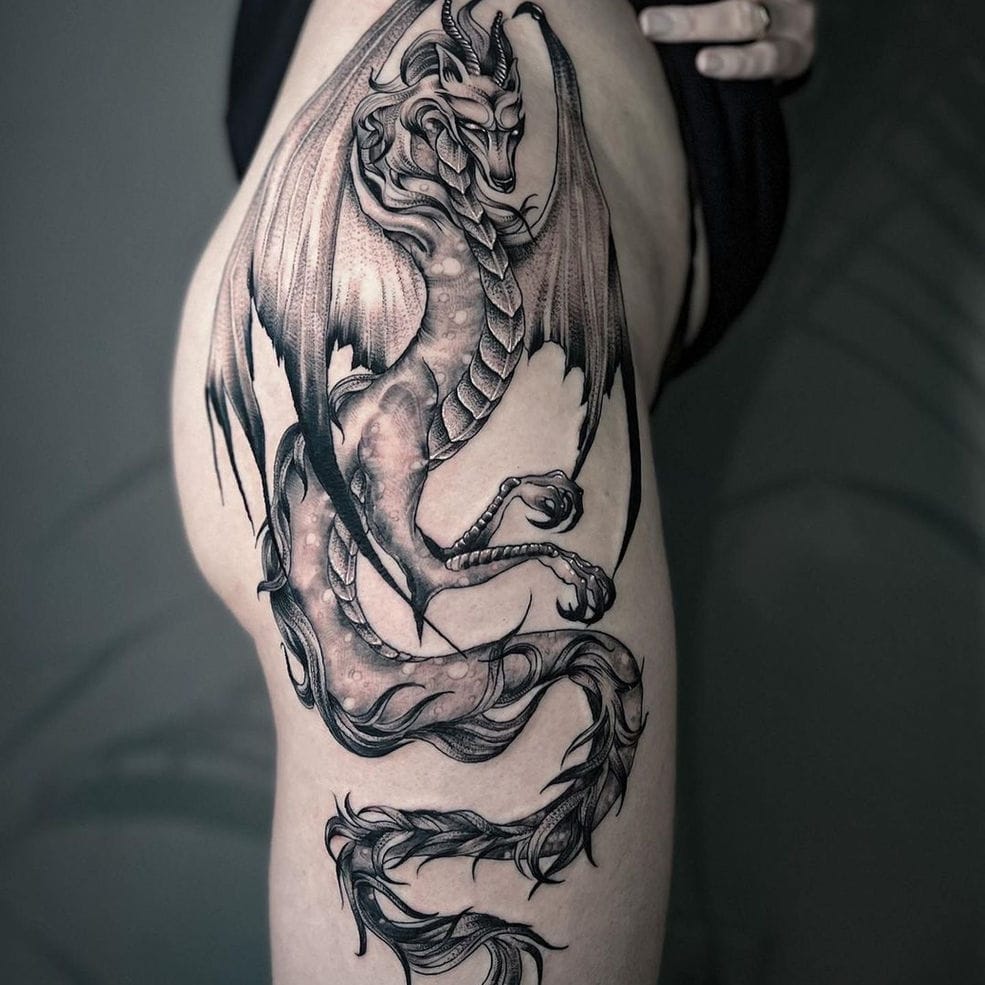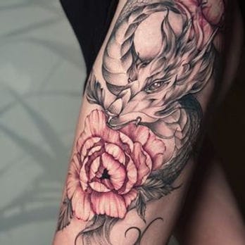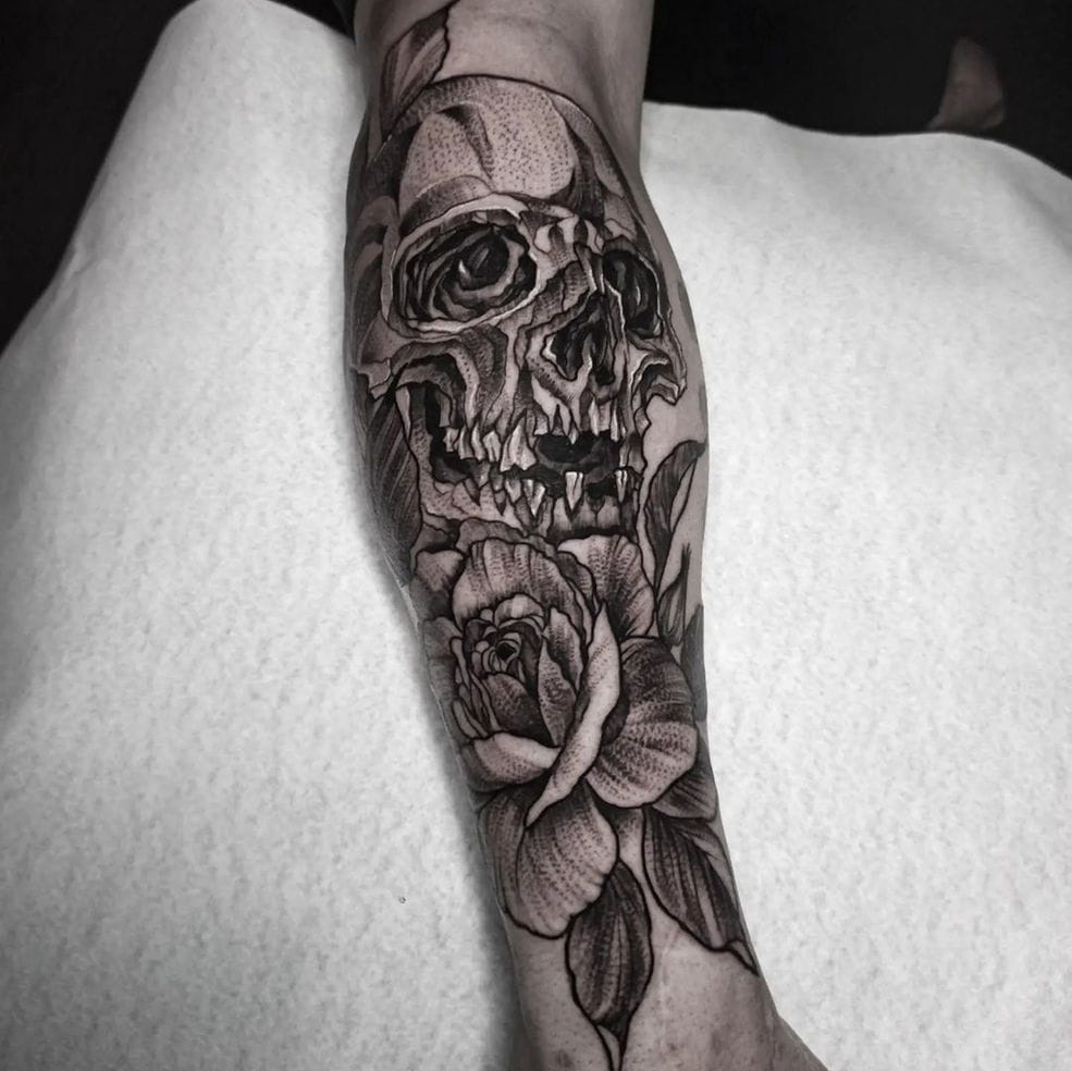 I’m Xenia and I’ve loved drawing since I can remember and studied Fine Arts. I’ve been tattooing since 2007, but my career as a full-time tattoo artist started 7 years ago. During my career, I’ve tried many different tattoo styles. My current style can best be described as illustrative and/or black work, even though I do enjoy tattooing with some color as well 🙂 I mostly like tattooing images inspired by nature, plants, animals, imaginary creatures, and skulls. Recently I’ve been doing a lot of free-hand tattoos, that way I make sure the design fits harmonically with the client’s body flow. I love details and textures, high contrast, and depth. I also consider myself a cover-up specialist 😁 I am vegan and make sure to only use vegan products in my studio.