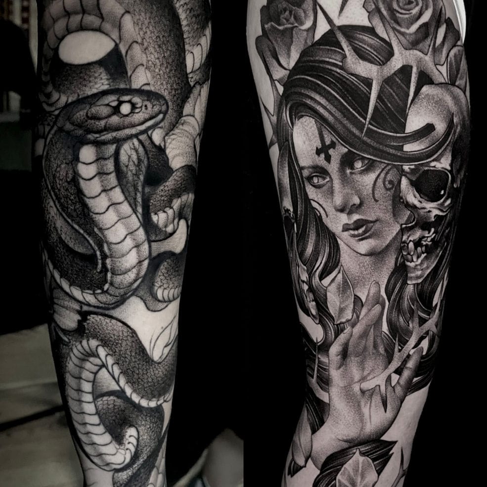 I’m Charlie, a tattoo artist originally from Poland. After playing with different fields of art, from graphic design, and illustration to comic books, and even concept art, I picked up tattooing in 2015. Almost instantly I fell in love with it and it became my main goal to perfect the craft and explore ways of expressing different ideas on the skin. Although my favorite topics are concentrated around darker and more grim subjects, I have a wide range of motifs and find myself very comfortable realizing anything from micro realism, black and gray, portraits, and realism, to any kind of illustrative and blackwork. Every tattoo I do, I approach with love and always do my best to represent not only my personal style but also meet my clients‘ needs.