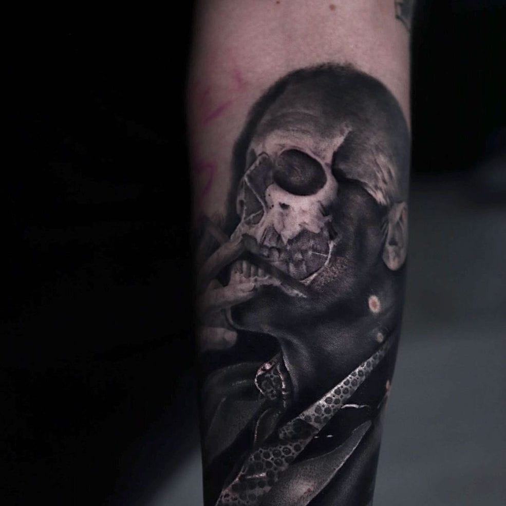 My name is Valent, I ignited my ink journey in 2017. Hailing from the captivating landscapes of Budapest, Hungary, I’ve crafted my niche in the mesmerizing realms of realism and black and grey. While I sway toward the vibrant shades of colored realism, I’m also drawn to monochromatic and greywash realism. Portraits, skulls, and animals became my muses, each stroke an ode to the intricate dance between imagination and ink. It’s just the beginning of a narrative that unfolds with every masterpiece. Join me on this artistic voyage where the extraordinary becomes the every day, and expressive tattoos transcend into timeless tales.