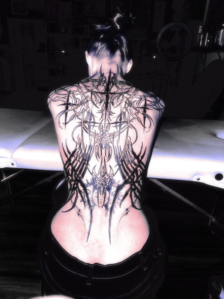 Cyber-sigilism is a cutting-edge tattoo style that combines elements of mysticism, technology, and abstract symbolism to create visually stunning and thought-provoking designs. Rooted in the aesthetics of futuristic and occult themes, cyber-sigilism features intricate linework, bold geometric shapes, and glyph-like patterns that evoke a sense of ancient rituals intertwined with advanced digital technology.