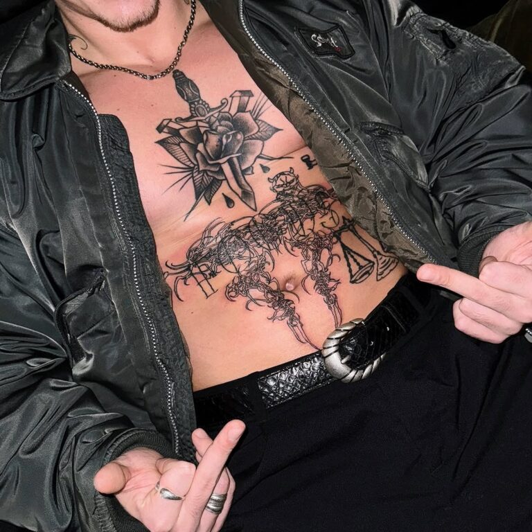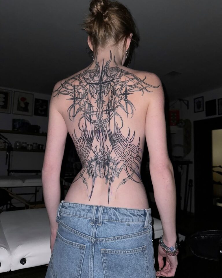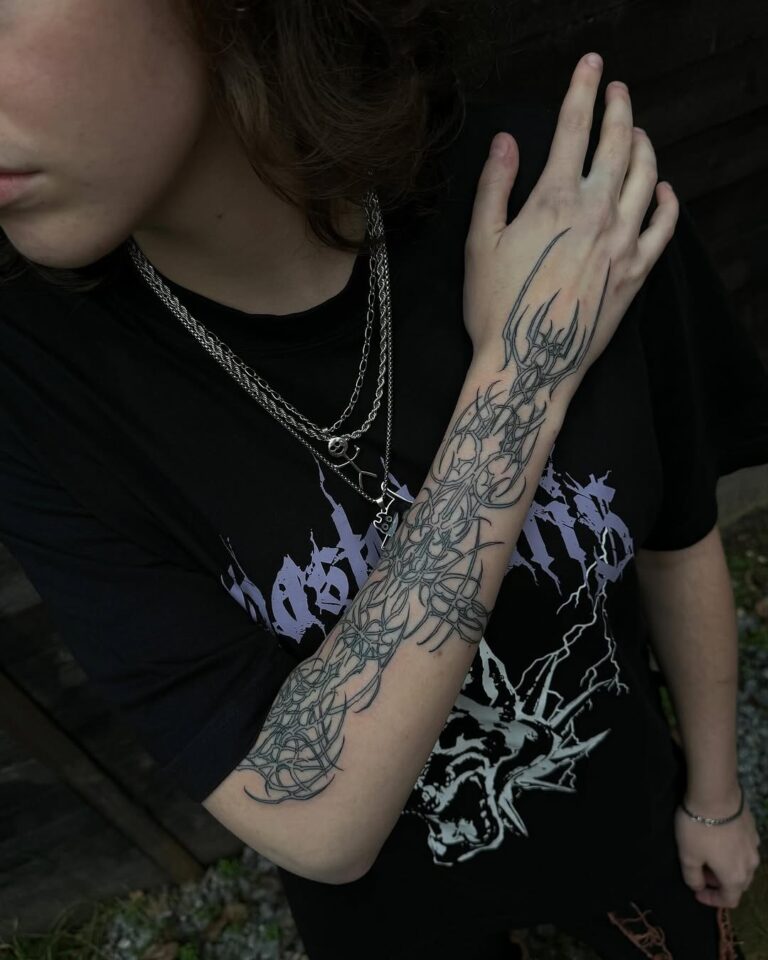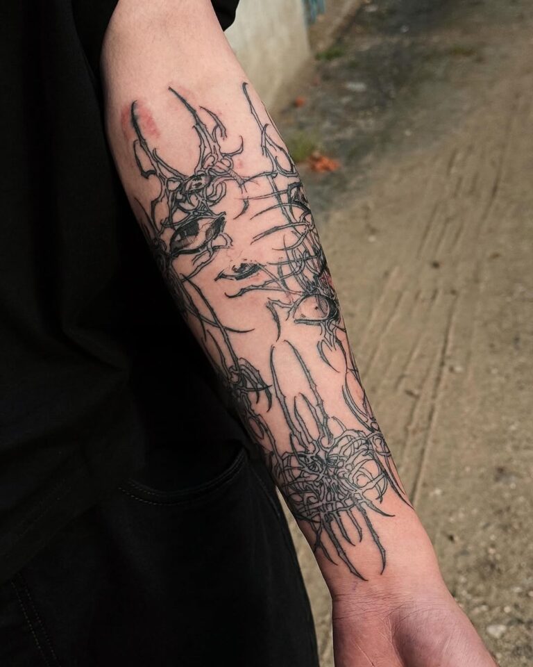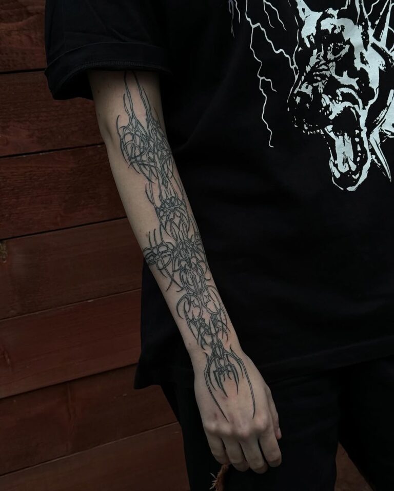 This style thrives on its ability to blend the mystical with the mechanical, resulting in tattoos that feel otherworldly yet deeply personal. Often rendered in monochromatic black ink, cyber-sigilism tattoos are highly detailed, with sharp contrasts and innovative compositions that push the boundaries of traditional tattoo artistry.