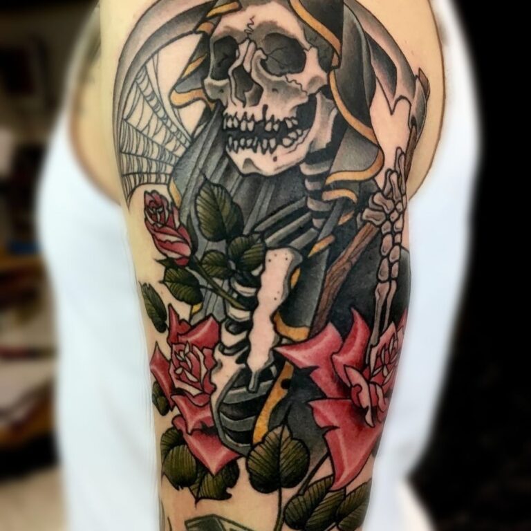The neo-traditional tattoo style combines the time-honored elements of traditional tattooing with a contemporary flair, resulting in a vibrant and dynamic form of body art. Characterized by bold lines, rich color palettes, and a focus on dimension and detail, it often features classic motifs infused with modern themes. Neo-traditional tattoos offer a versatile and evolving canvas seamlessly blending traditional aesthetics with contemporary creativity. This style allows our seasoned artists to explore more intricate and elaborate designs while maintaining the strong visual impact of traditional tattoos.